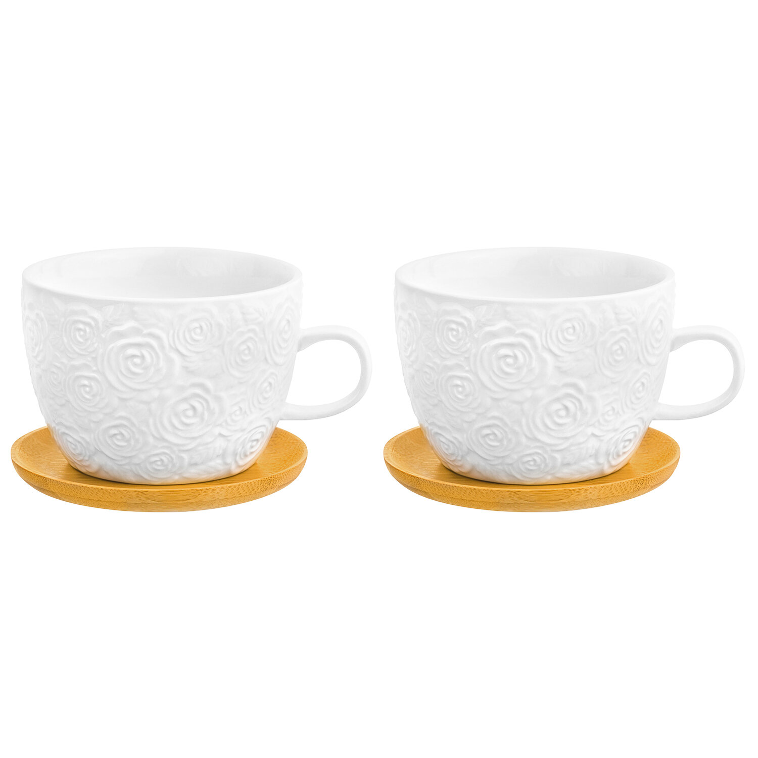Чашка, кружка для чая, кофе 2 шт по 500 мл Elan Gallery "Розы", на дер. подставке, набор информация: