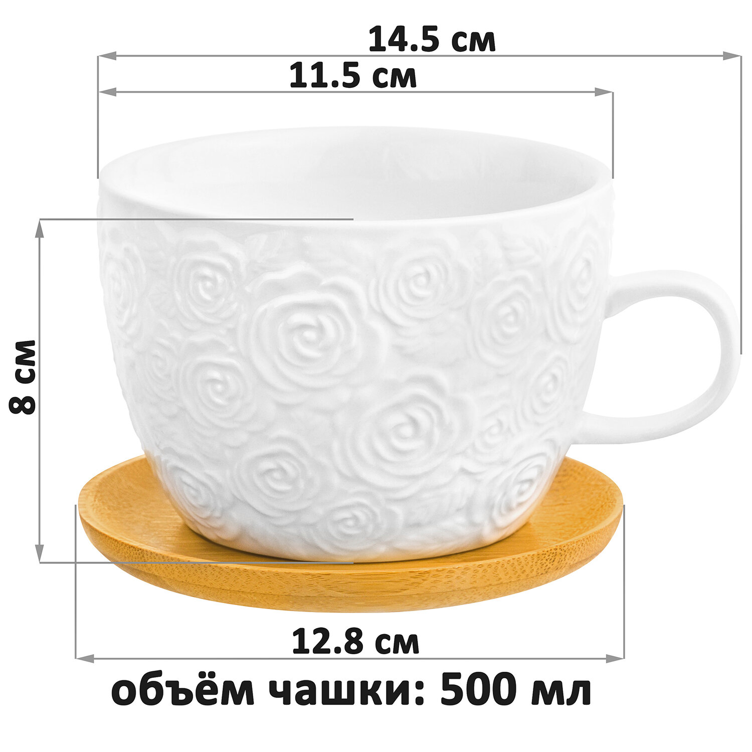 10 цен на Чашка, кружка для чая, кофе 2 шт по 500 мл Elan Gallery "Розы", на дер. подставке, набор