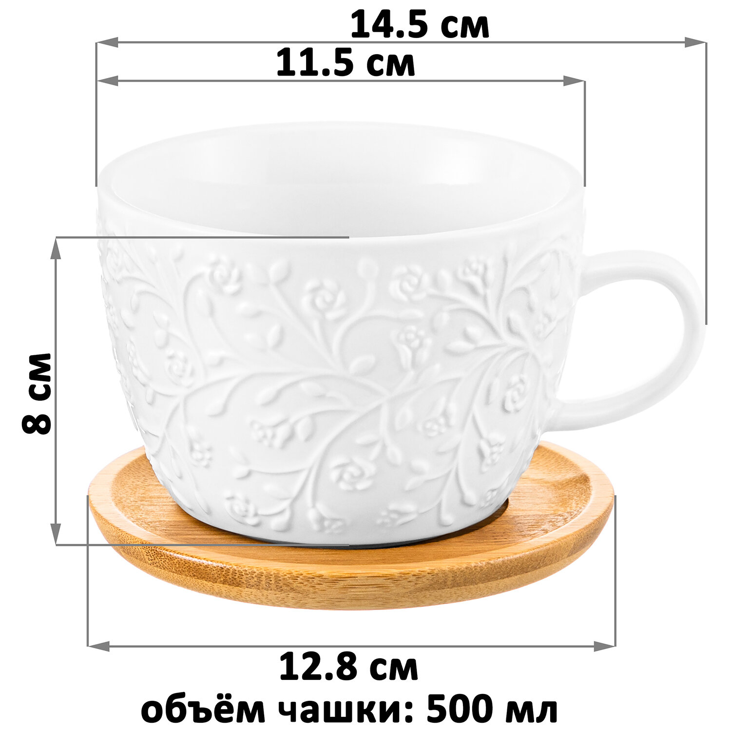 Чашка, кружка для чая, кофе 500 мл Elan Gallery Лоза + деревянная подставка 796 ₽