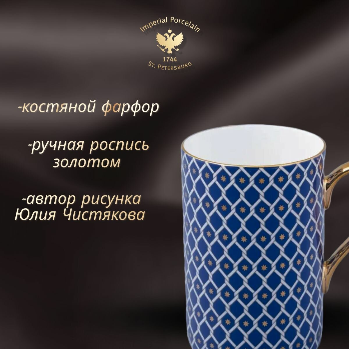 Отзывы на Кружка 400 мл. Форма "Идиллия", рисунок "Индиго 2". Костяной фарфор. Бокал для чая. Императорский фарфоровый завод ИФЗ ЛФЗ.