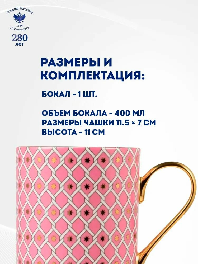 Кружка 400 мл. Форма "Идиллия", рисунок "Скарлетт 1". Костяной фарфор. Бокал для чая. Императорский фарфоровый завод ИФЗ ЛФЗ. 3 424 ₽