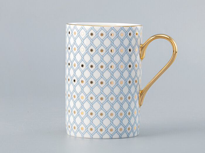 Кружка 400 мл. Форма "Идиллия", рисунок "Индиго 2". Костяной фарфор. Бокал для чая. Императорский фарфоровый завод ИФЗ ЛФЗ. 3 604 ₽