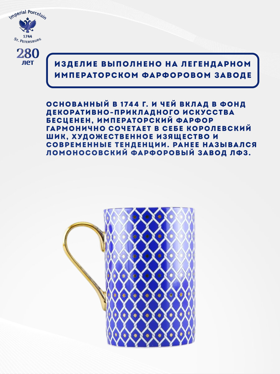 Кружка 400 мл. Форма "Идиллия", рисунок "Индиго 2". Костяной фарфор. Бокал для чая. Императорский фарфоровый завод ИФЗ ЛФЗ. 3 604 ₽