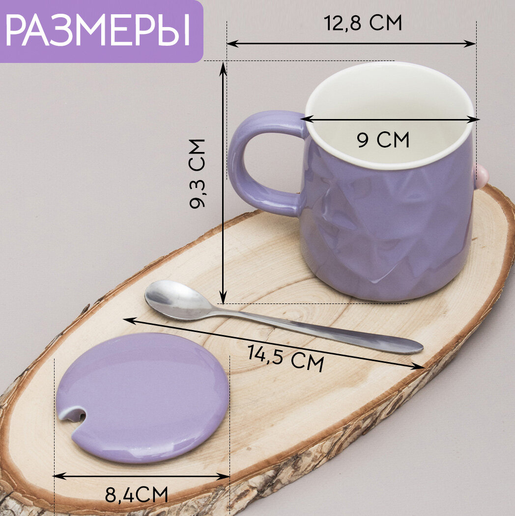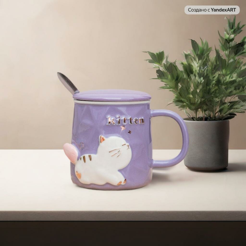 Кружка "эврика Котик" 370 мл, с крышкой и ложкой информация: