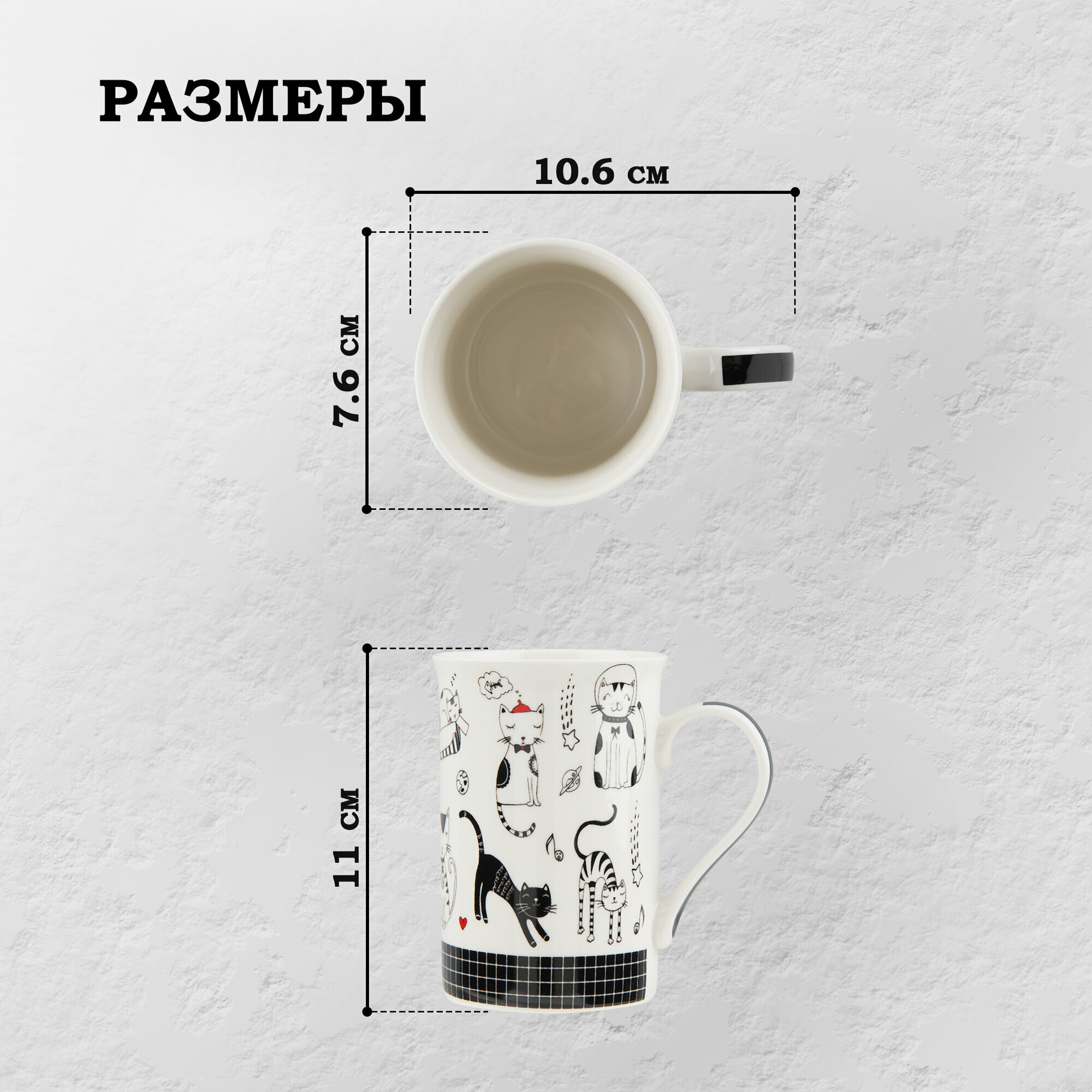 Кружка для чая и кофе Доляна "Кошачьи будни", 300 мл, фарфор, белая информация: