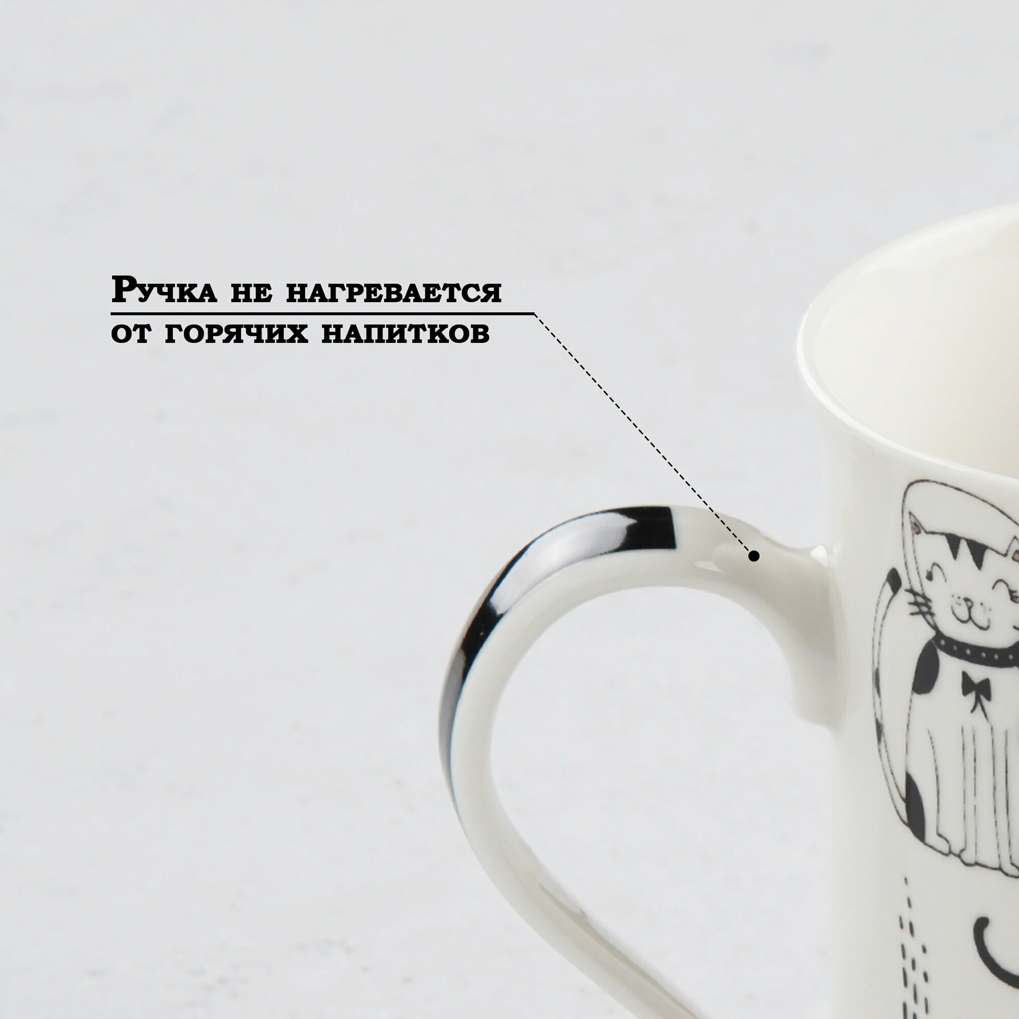 Кружка Доляна «Коты-аристократы», 350 мл, фарфор, белая