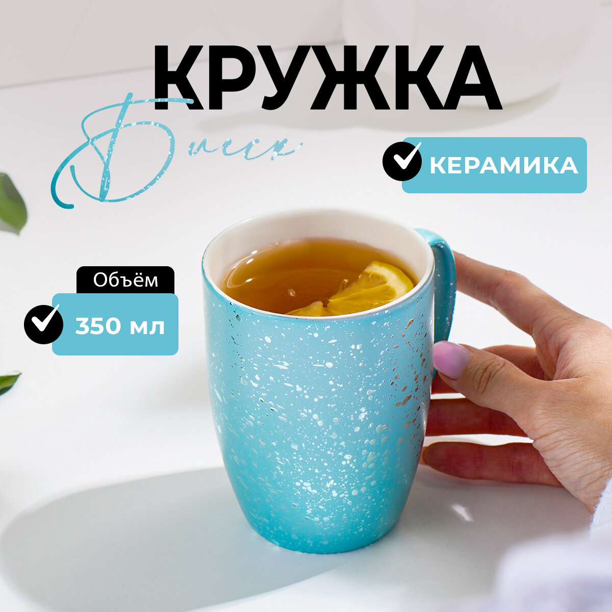 Кружка керамическая для чая и кофе с посеребрением большая Доляна «Блеск» 350 мл 506 ₽