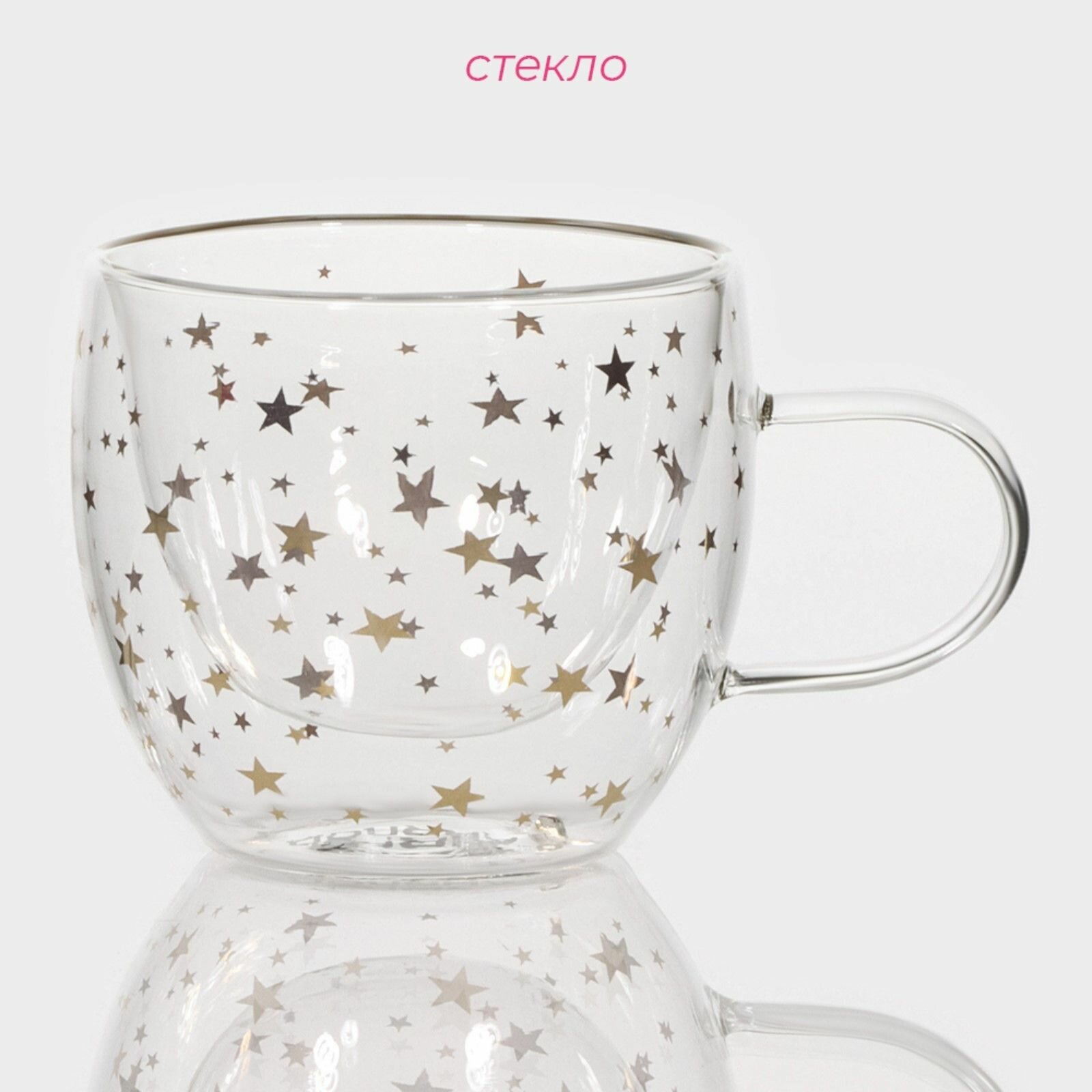 Кружка с двойными стенками Доляна Дуо. Звёзды , 160 мл, 12.5 9 7.5 см, стекло информация: