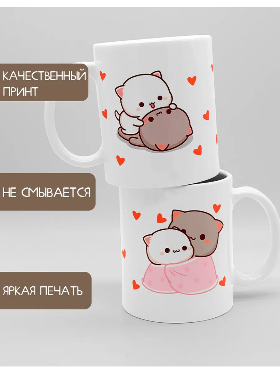 Кружка CupLuv "Парные котики", керамика, 330 мл, использование в посудомоечной машине 495 ₽