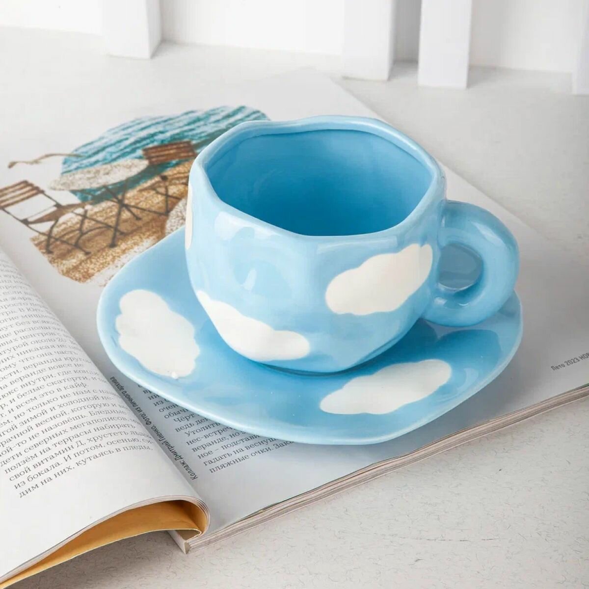 10 цен на Чайная пара DB HOMME, керамика, 3D-дизайн, белая/голубая, 300 мл