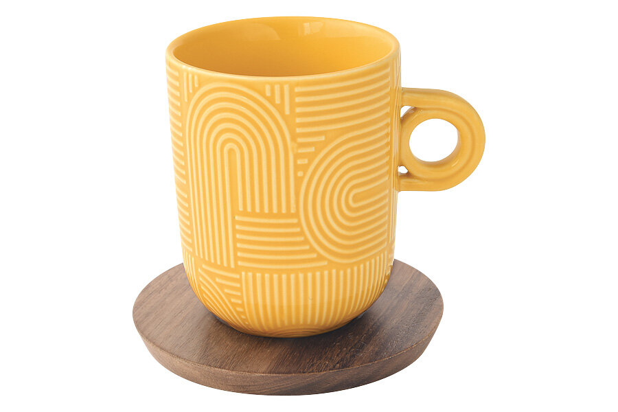 Кружка, 350 мл, 2 шт, на подставке, фарфор P/дерево, красный/желтый, Take a loop информация: