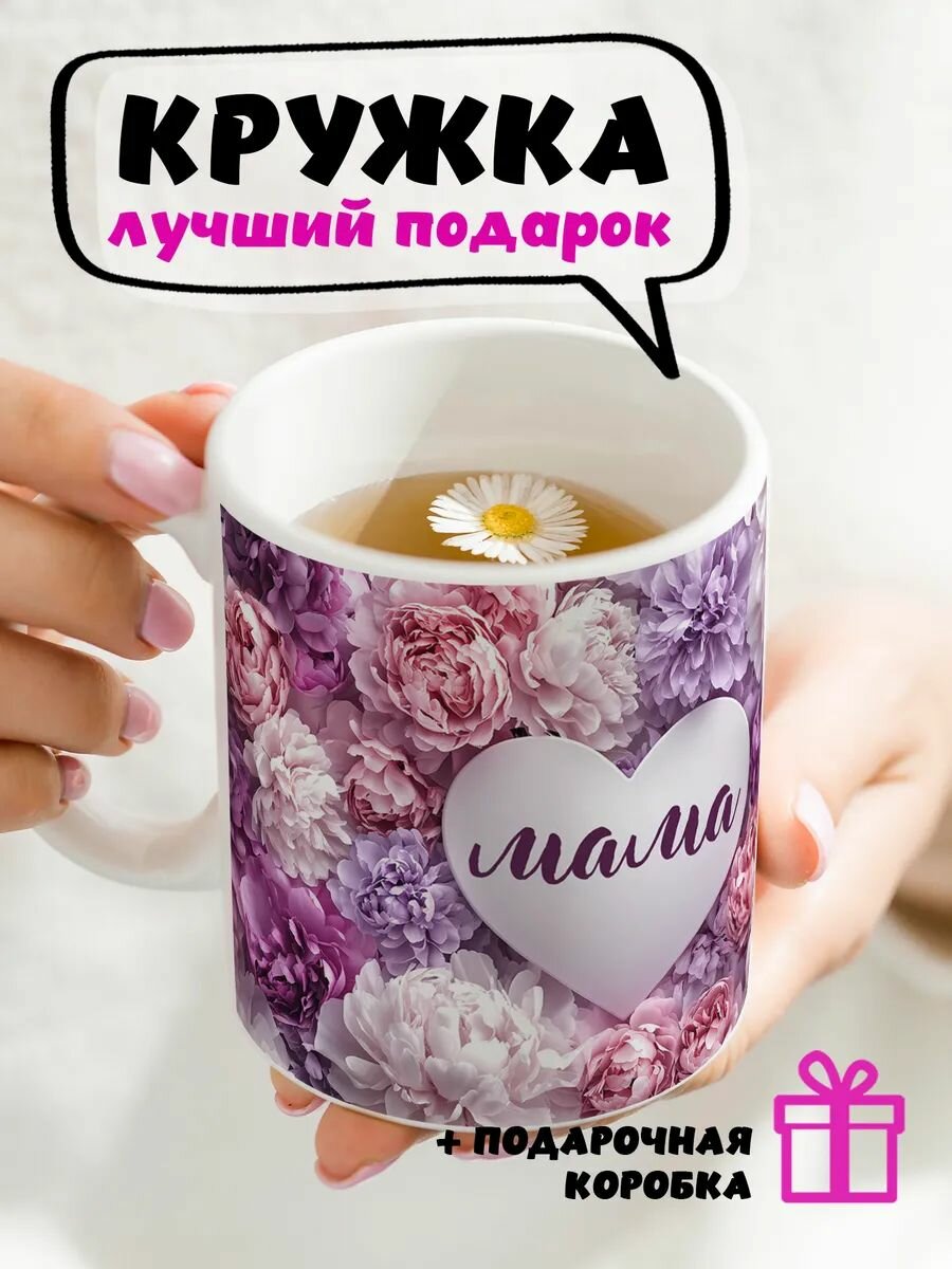 10 цен на Кружка керамическая для чая и кофе с принтом и надписью подарок для мамы "Пионы - мама"