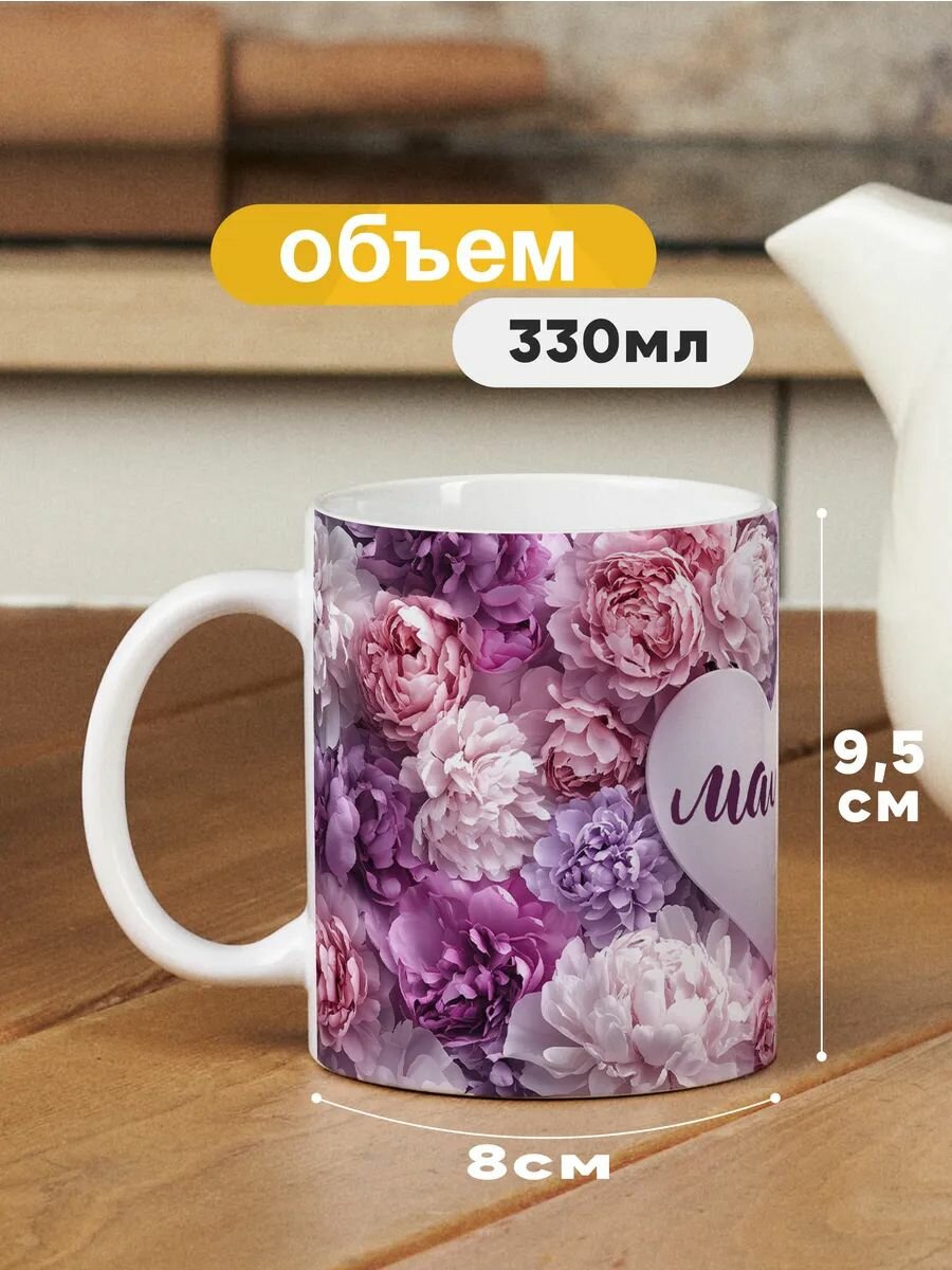 Кружка керамическая для чая и кофе с принтом и надписью подарок для мамы "Пионы - мама" информация: