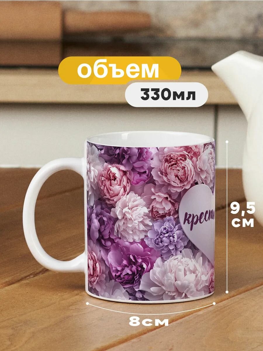 10 цен на Кружка керамическая для чая и кофе с принтом и надписью подарок крестнице "Пионы - крестница"