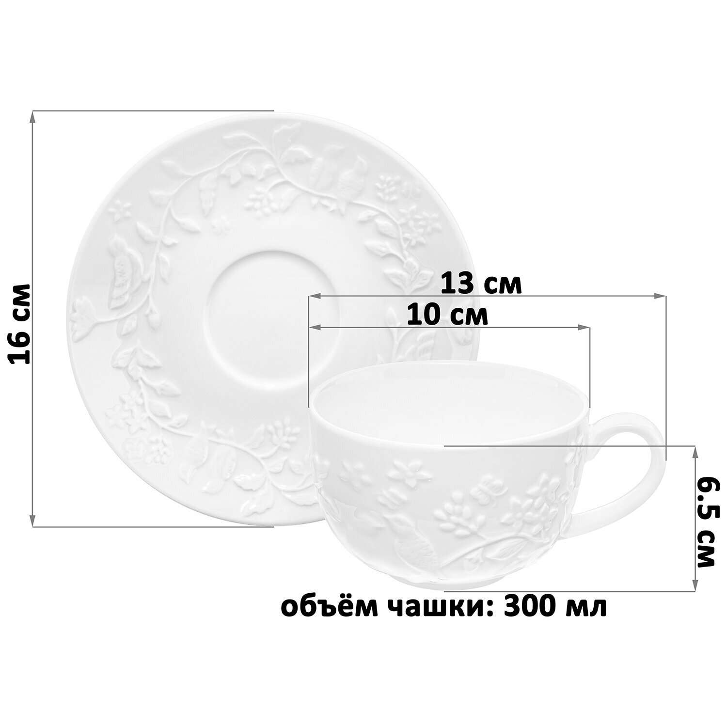 Отзывы на Чайная пара, чашка с блюдцем 8 предметов 300 мл Elan Gallery Птички на ветке