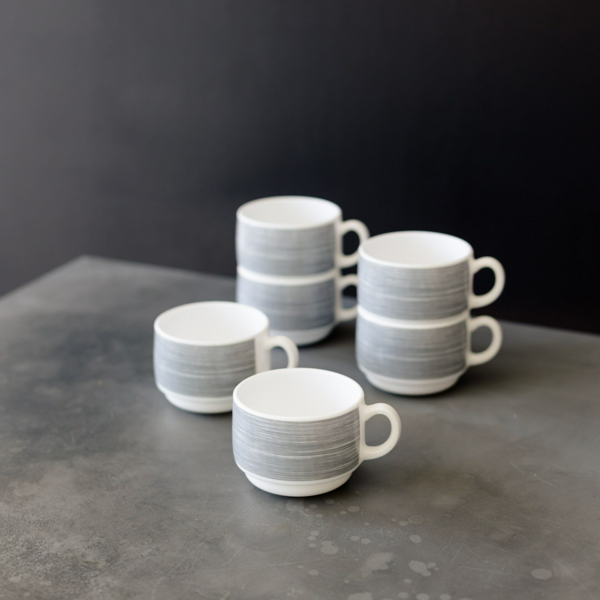 10 цен на Набор чашек чайных 190 мл. диаметр 7,6 см. высота 5,7 см, 6 шт, стеклокерамика, серый Arcoroc Brush