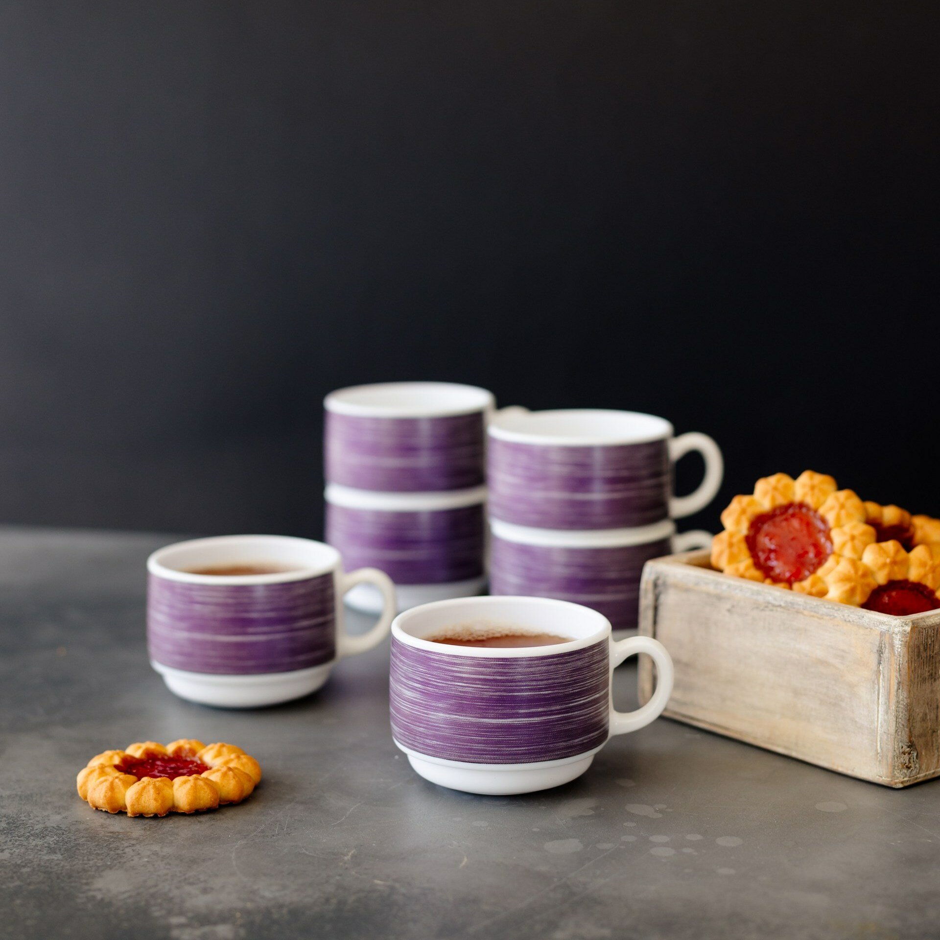 10 цен на Набор чашек чайных 190 мл. диаметр 7,6 см. высота 5,7 см, 6 шт, стеклокерамика, сиреневый Arcoroc Brush
