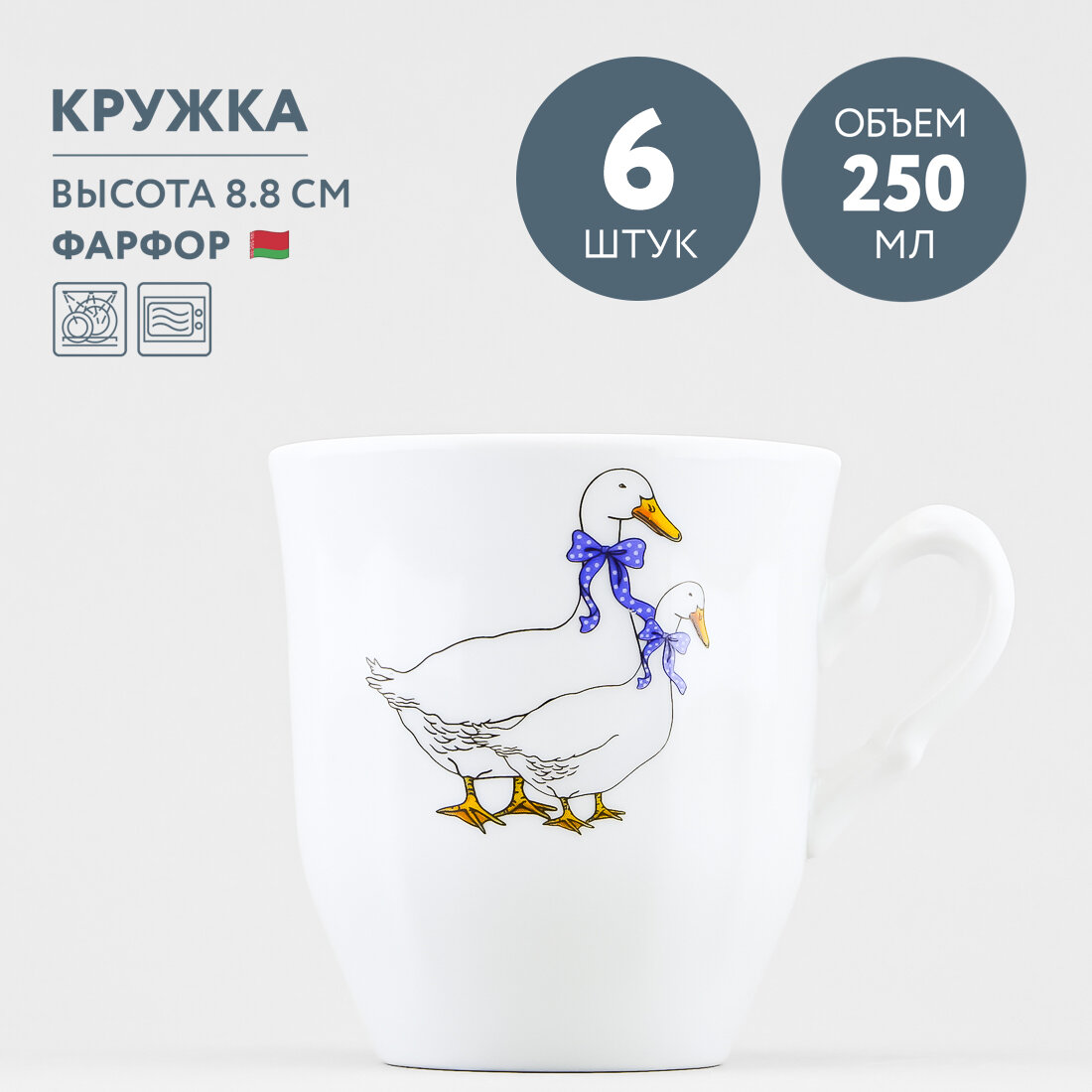 Набор кружек детская для чая 250 мл Добрушский фарфор Гуси, 6 штук информация: