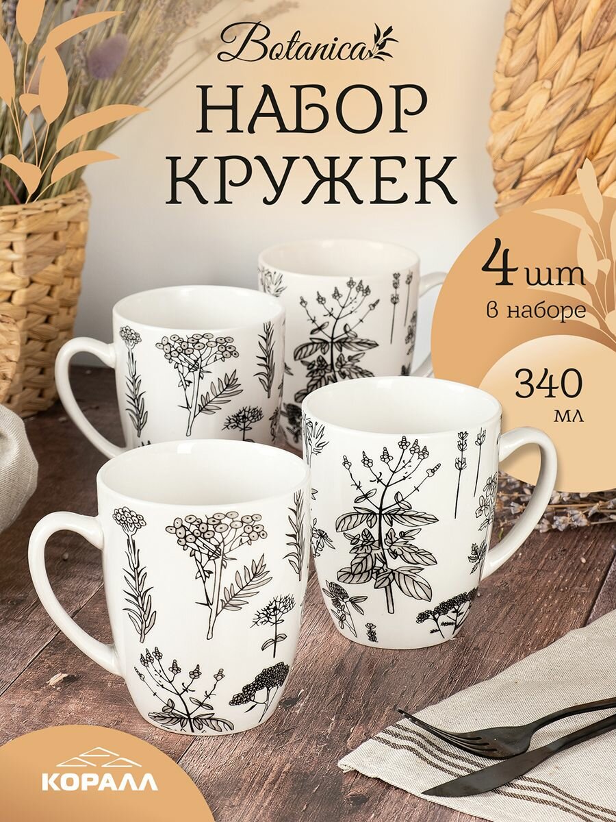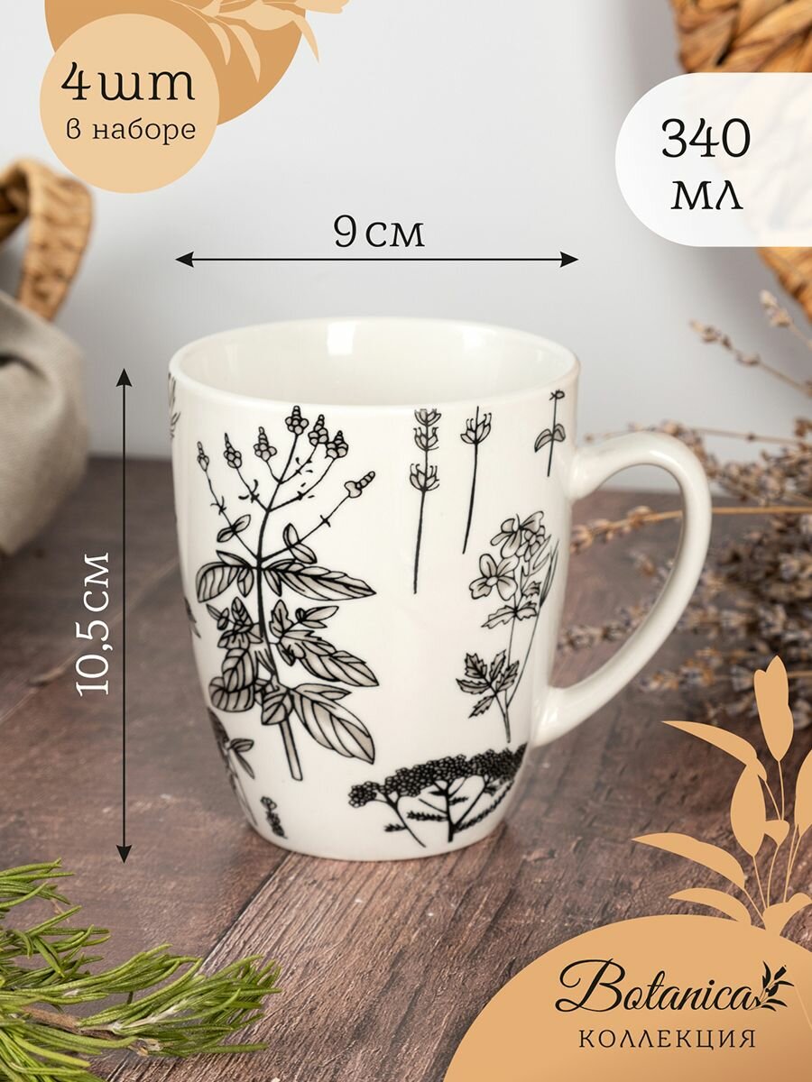 10 цен на Набор кружек 4 шт. 340 мл фарфор "Botanica" кружка для чая кофе какао