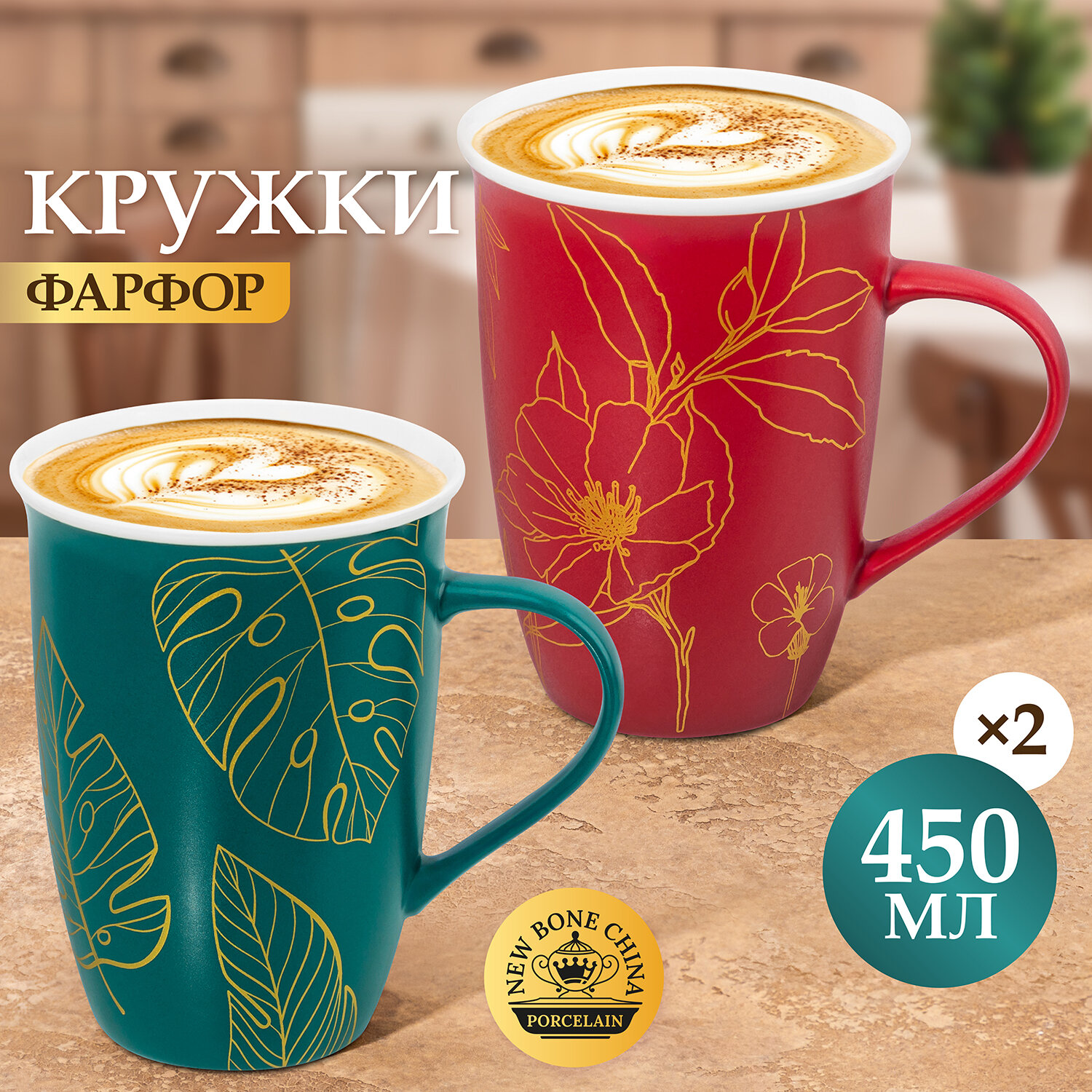 10 цен на Набор 2 кружек по 450 мл Elan Gallery Цветок + Листья, красный, зеленый