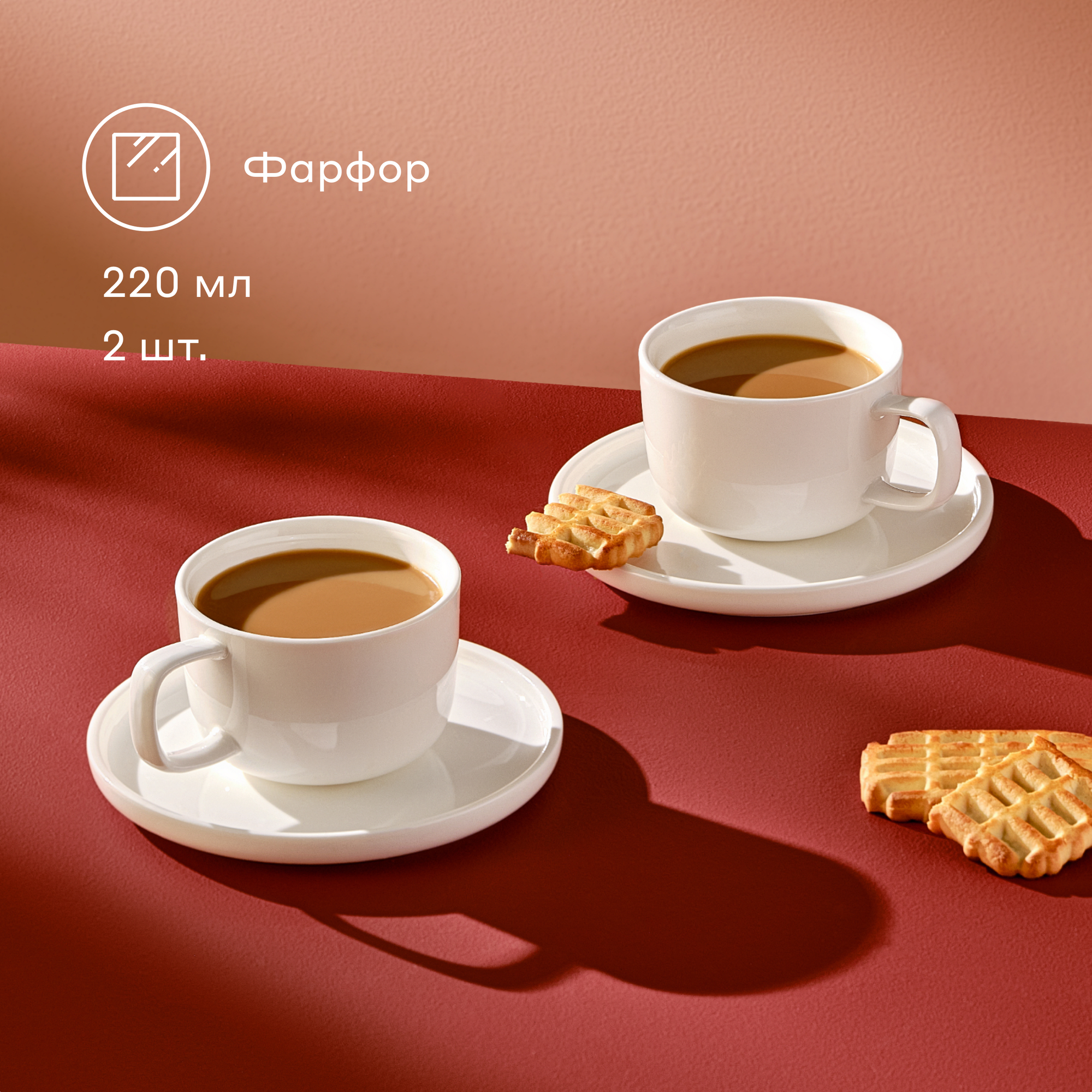 10 цен на Набор чайных пар Pragma Ovuda 2 шт, фарфор, белый, объем 220 мл