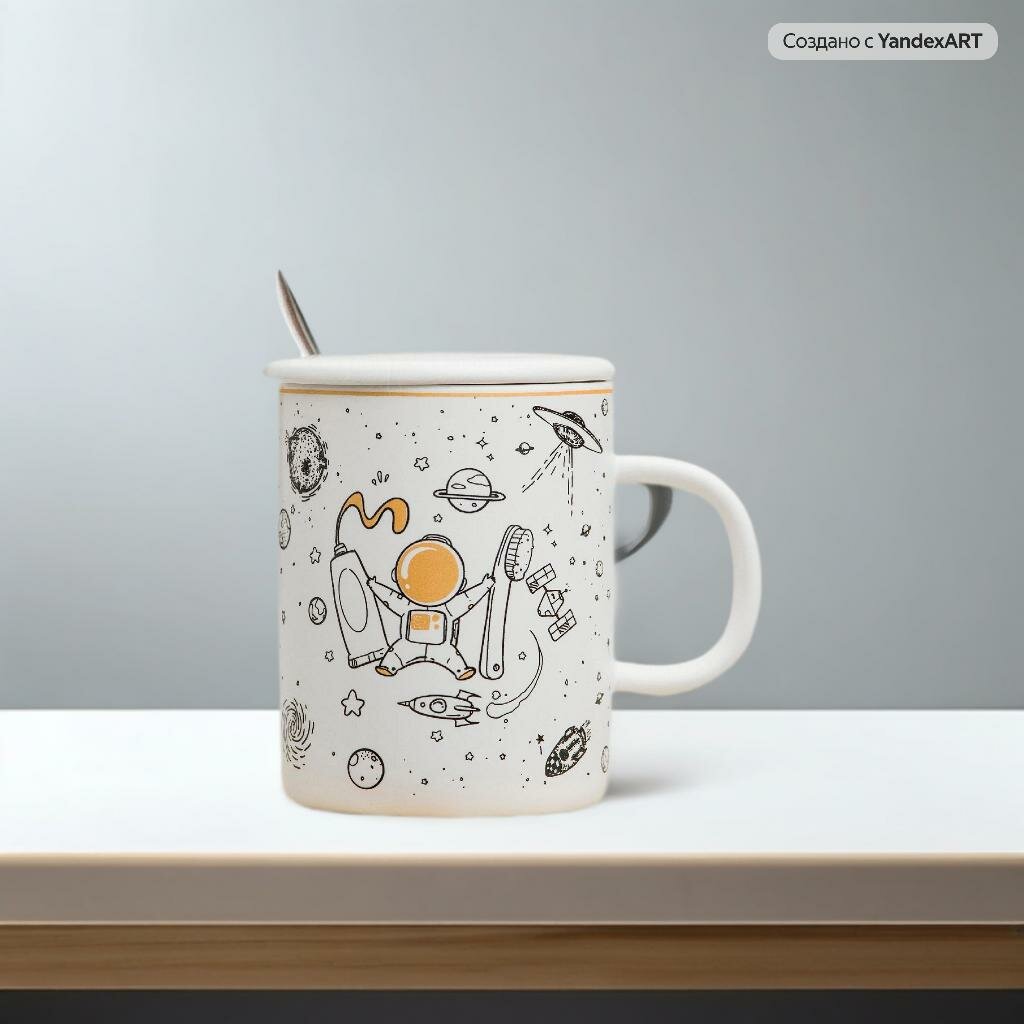 10 цен на Кружка Космический мультик (N 2) 370 мл, кружка с крышкой и ложкой детская, подарочная Космос 12 апреля День космонавтики, 23 февраля