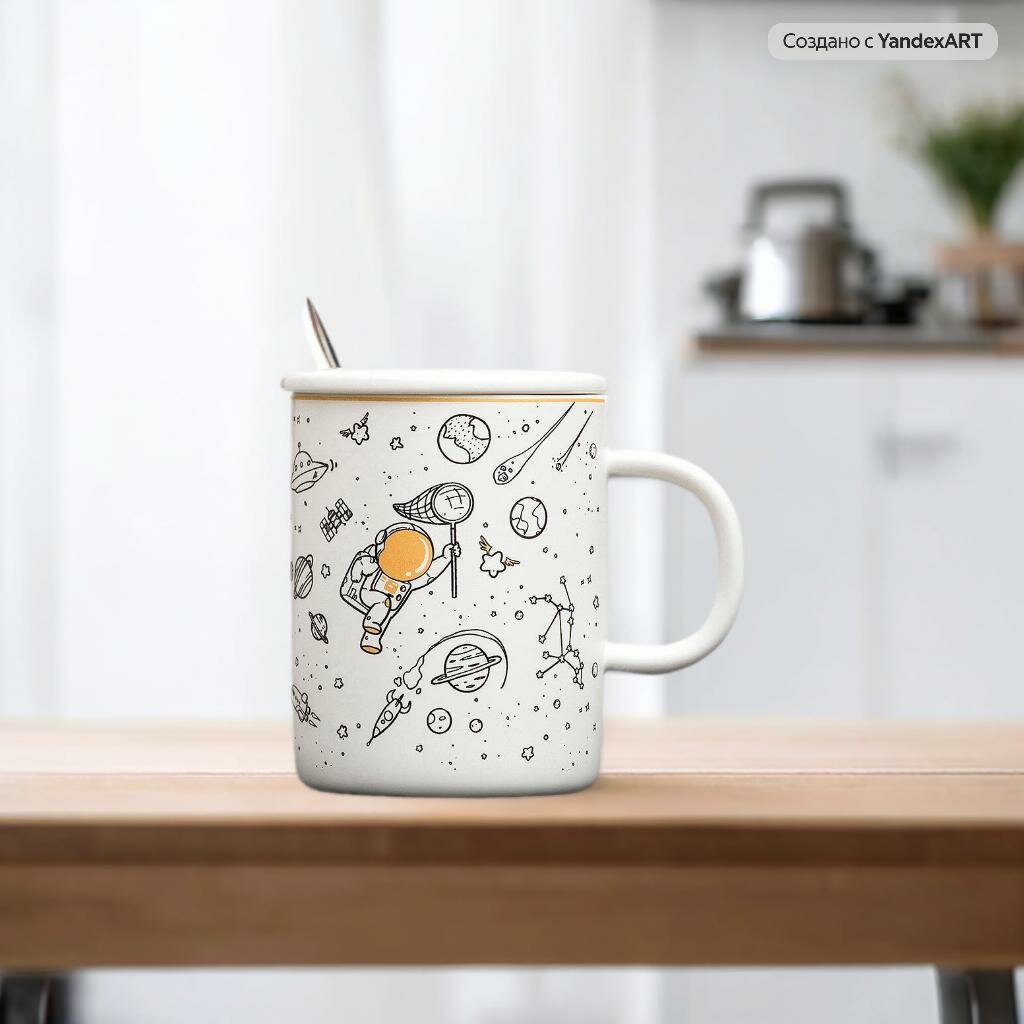 10 цен на Кружка Космический мультик (N 4) 370 мл, кружка с крышкой и ложкой детская, подарочная Космос 12 апреля День космонавтики, 23 февраля