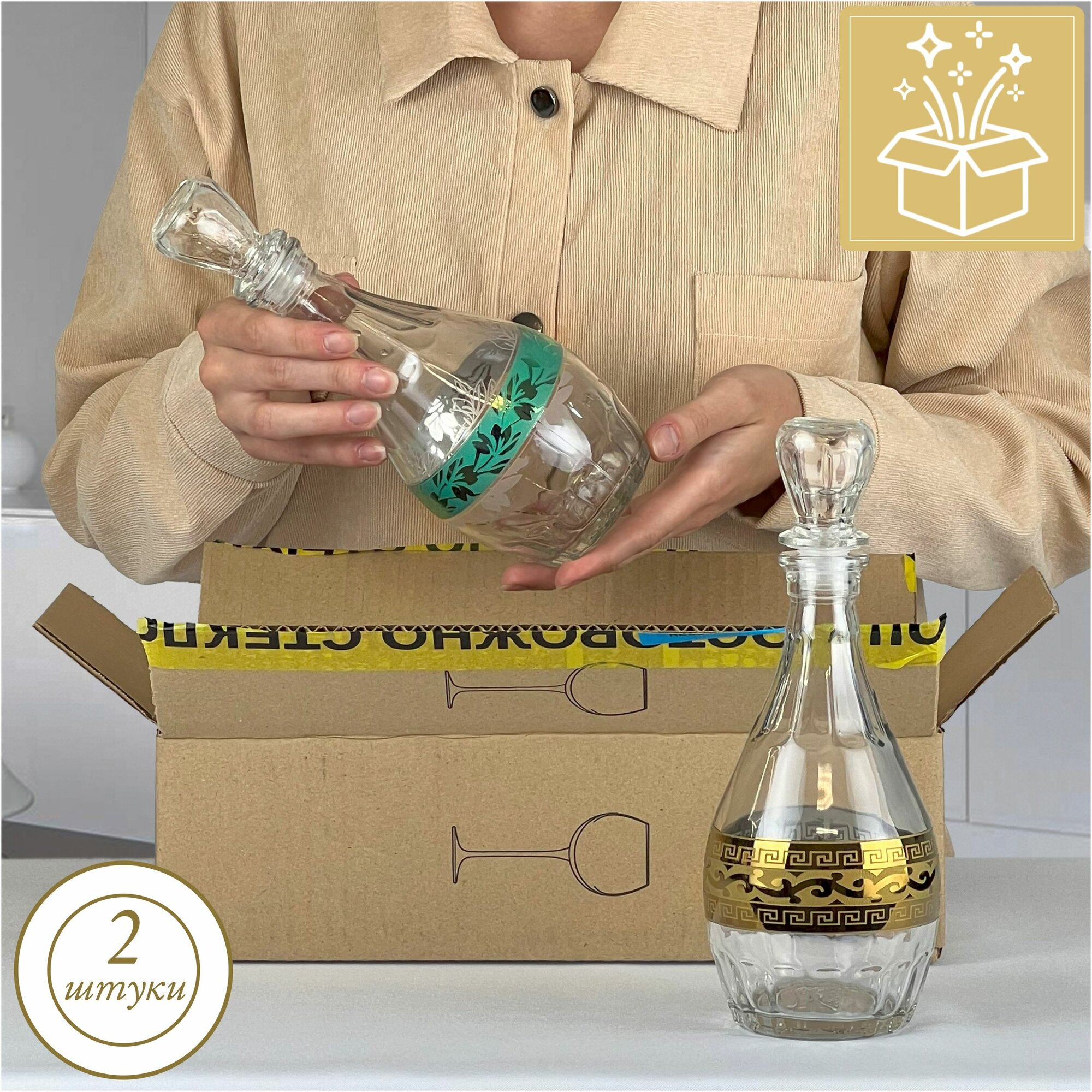 Набор графинов (штоф) с пробкой для крепких напитков с алмазной гравировкой PROMSIZ сюрприз, 500 мл, 2 шт. информация: