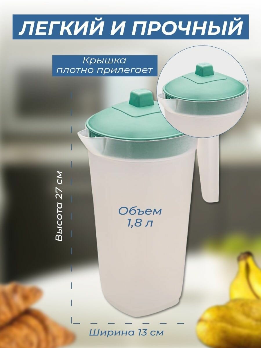 Кувшин пластиковый для напитков, объемом 1.8л. Sparkplast с крышкой фисташкового цвета. информация: