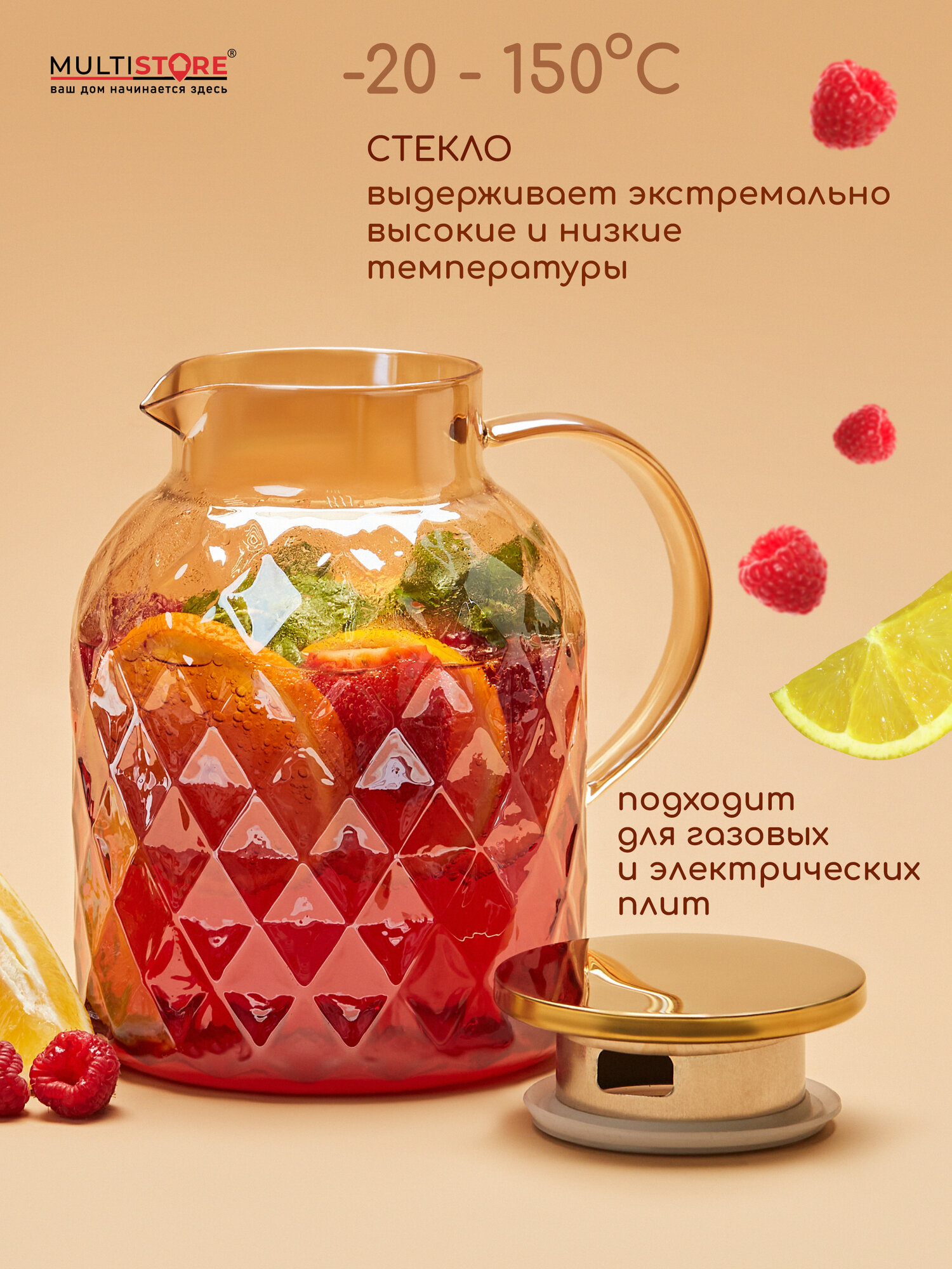 Графин (кувшин) стеклянный для воды с крышкой фильтром из бамбука и стали термостойкий для горячих и холодных напитков информация: