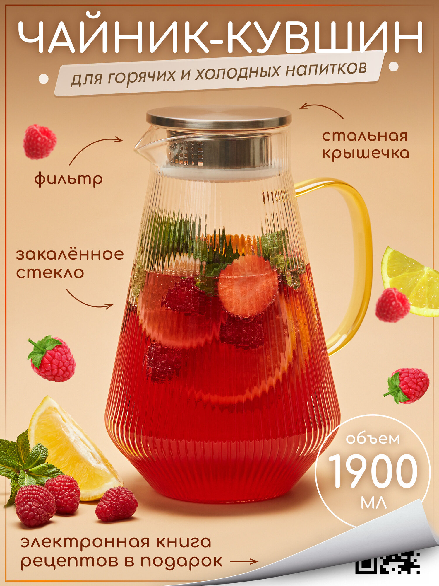 10 цен на Графин (кувшин) для воды стеклянный с крышкой из стали с фильтром термостойкий для горячих и холодных напитков
