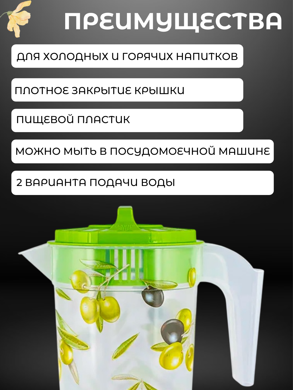 Отзывы на Кувшин Phibo "Олива", для напитков, 1,2 л, с фильтром, пластик, прозрачный, крышка