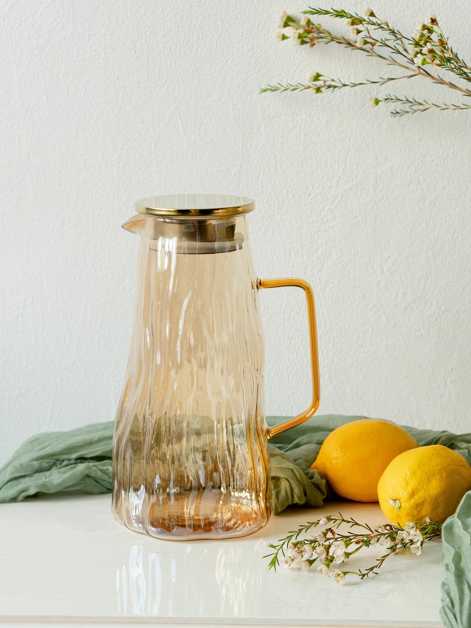 Кувшин для горячих и холодных напитков 1,8 л. графин для воды стеклянный желтый с крышкой и ручкой Коралл информация: