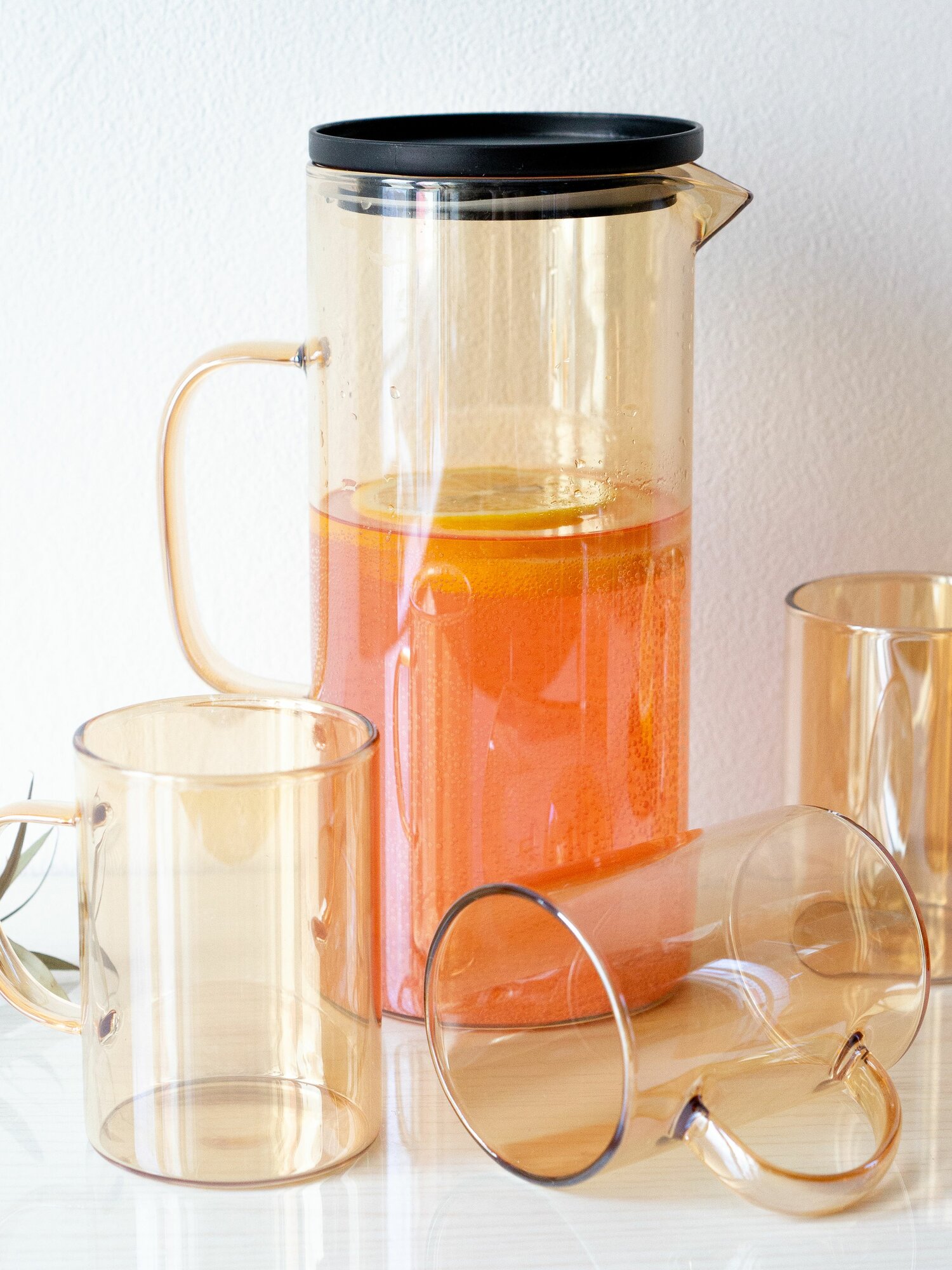 Отзывы на Графин со стаканами 1500/300 мл. 5 предметов желтый стекло в подарочной упаковке кувшин для горячих и холодных напитков с кружками