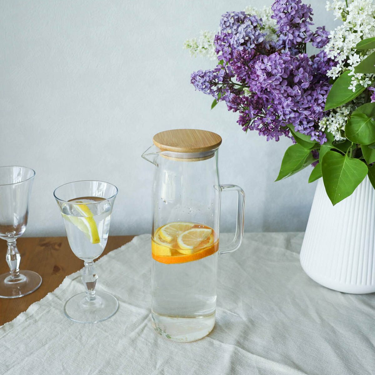 Отзывы на Кувшин стеклянный с бамбуковой крышкой 1300 мл для воды и лимонада