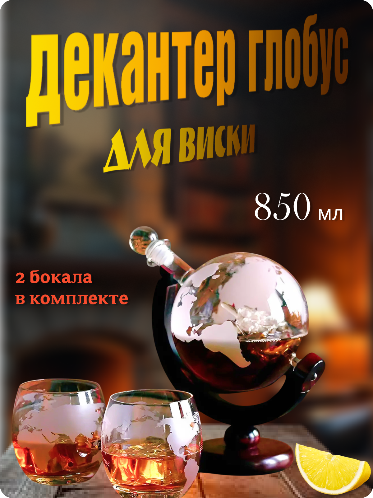 Графин глобус с двумя стаканами информация: