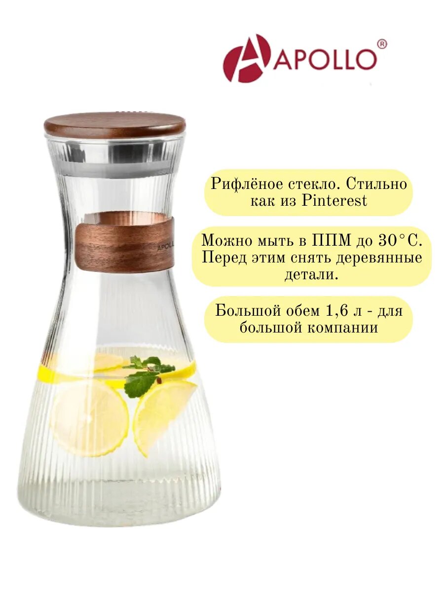 10 цен на Кувшин-графин APOLLO, для воды и сока, с крышкой, стекло, металл, дерево, 1.6 л