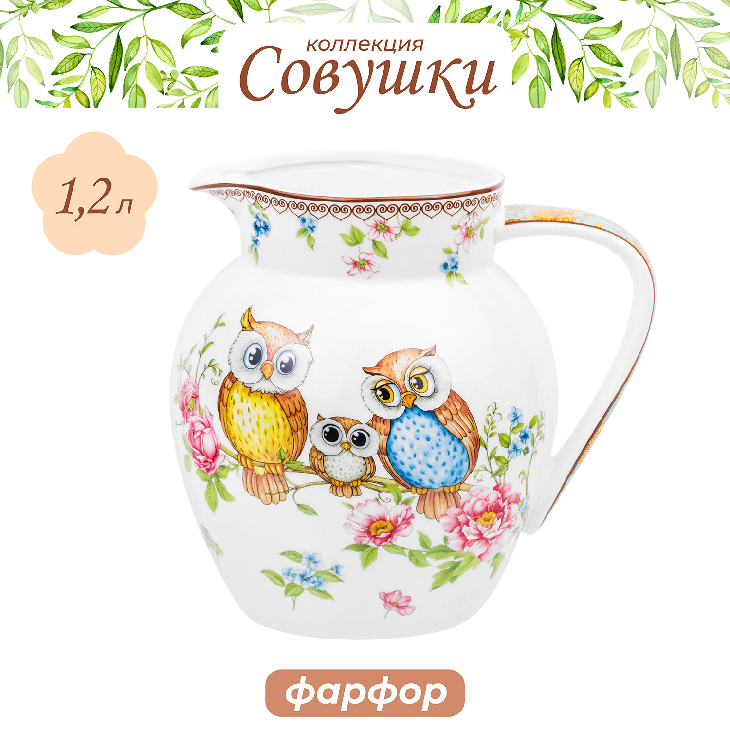 Кувшин 1,2 л 16х13х15,5 см Elan Gallery Совушки фарфоровый для воды без крышки информация: