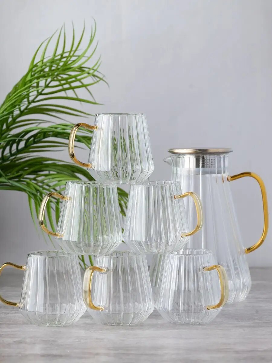 10 цен на Графин стеклянный кувшин для воды и набор кружек 6 шт