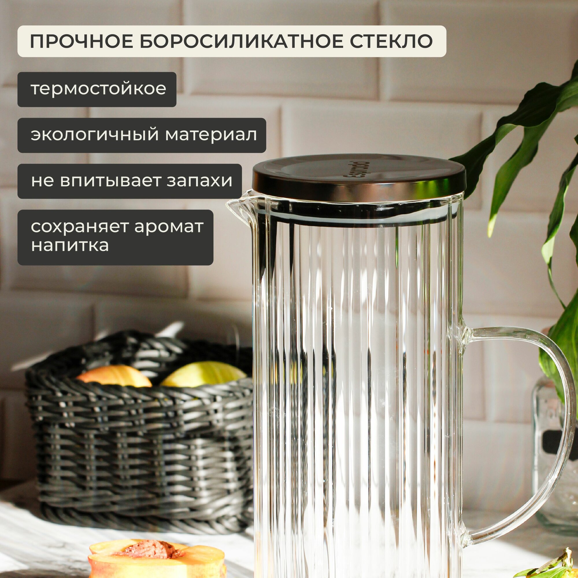 Кувшин для воды Borgonovo / графин / стеклянный с носиком 1,5 л. без крышки