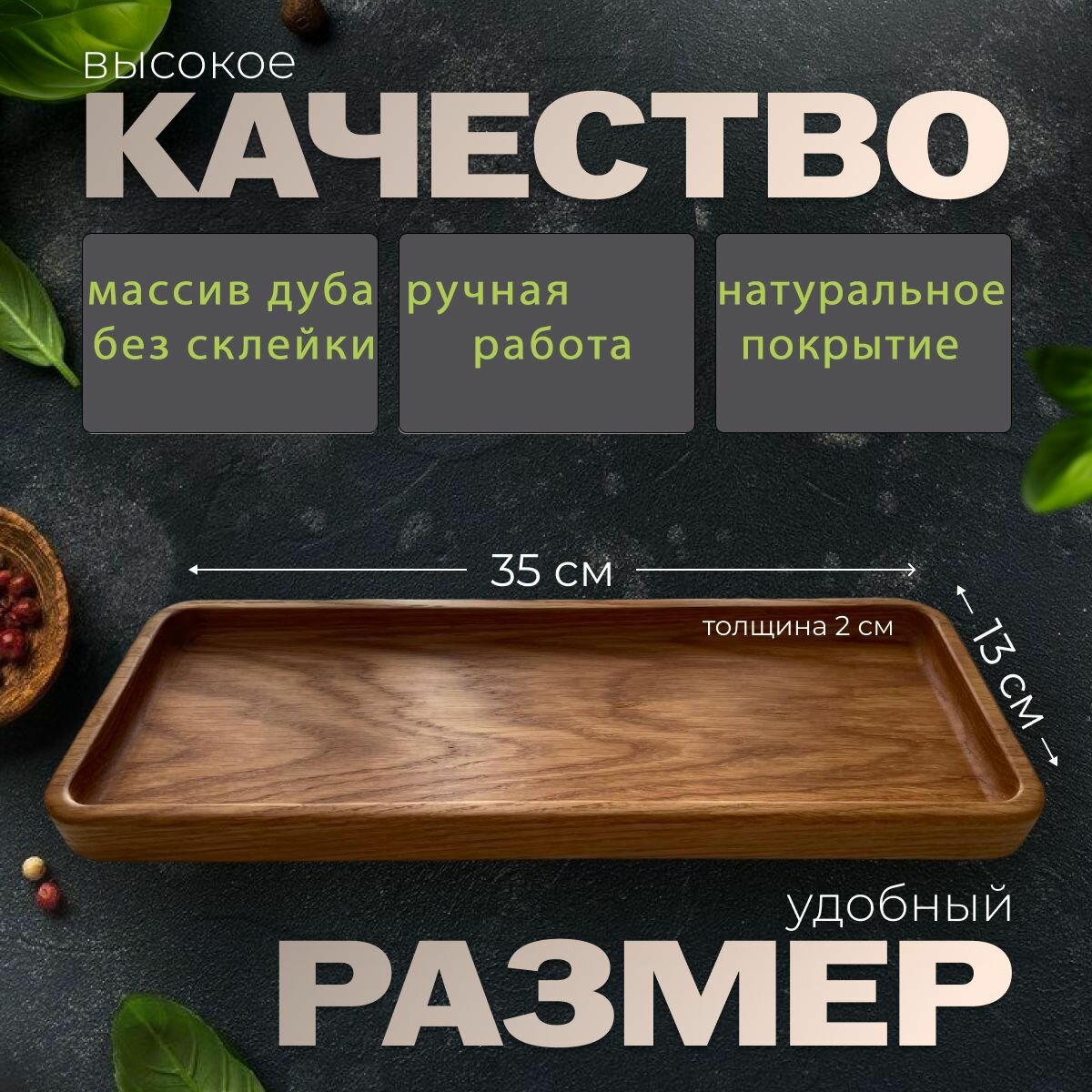 10 цен на Поднос "Дубовый", цельный, из массива дуба, коричневый, длина 35см, ширина 13см