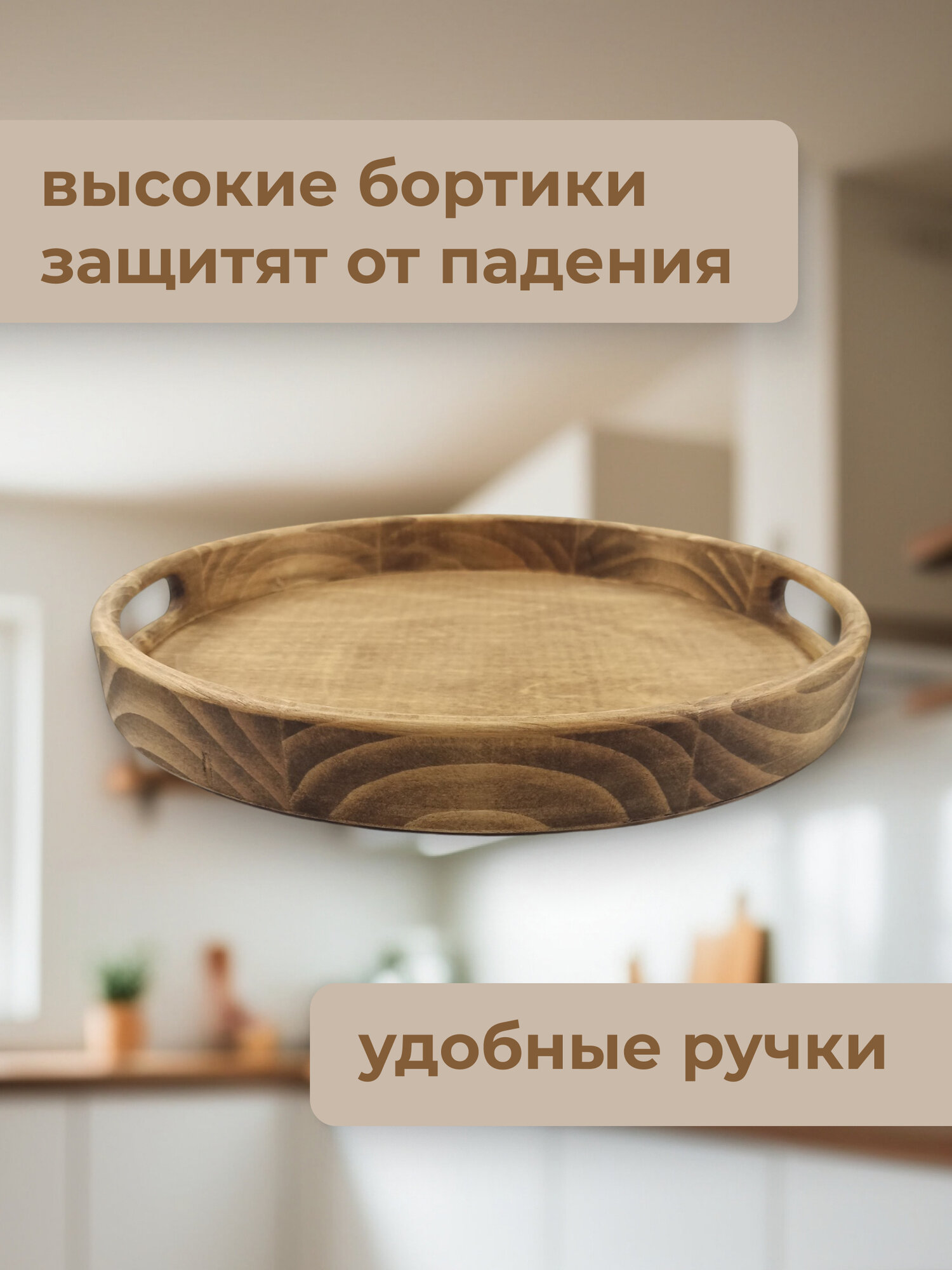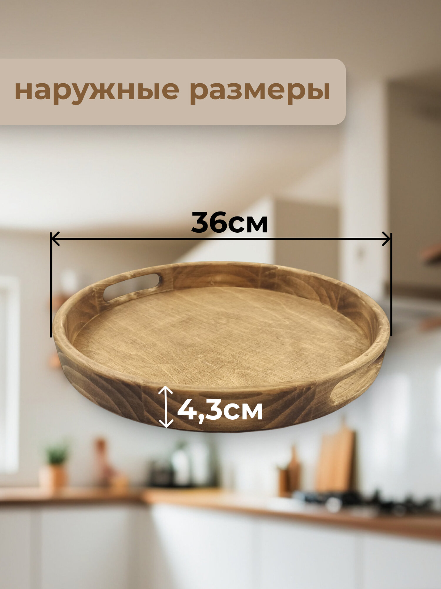 Поднос декоративный, дерево, круглый, диаметр 36 см информация: