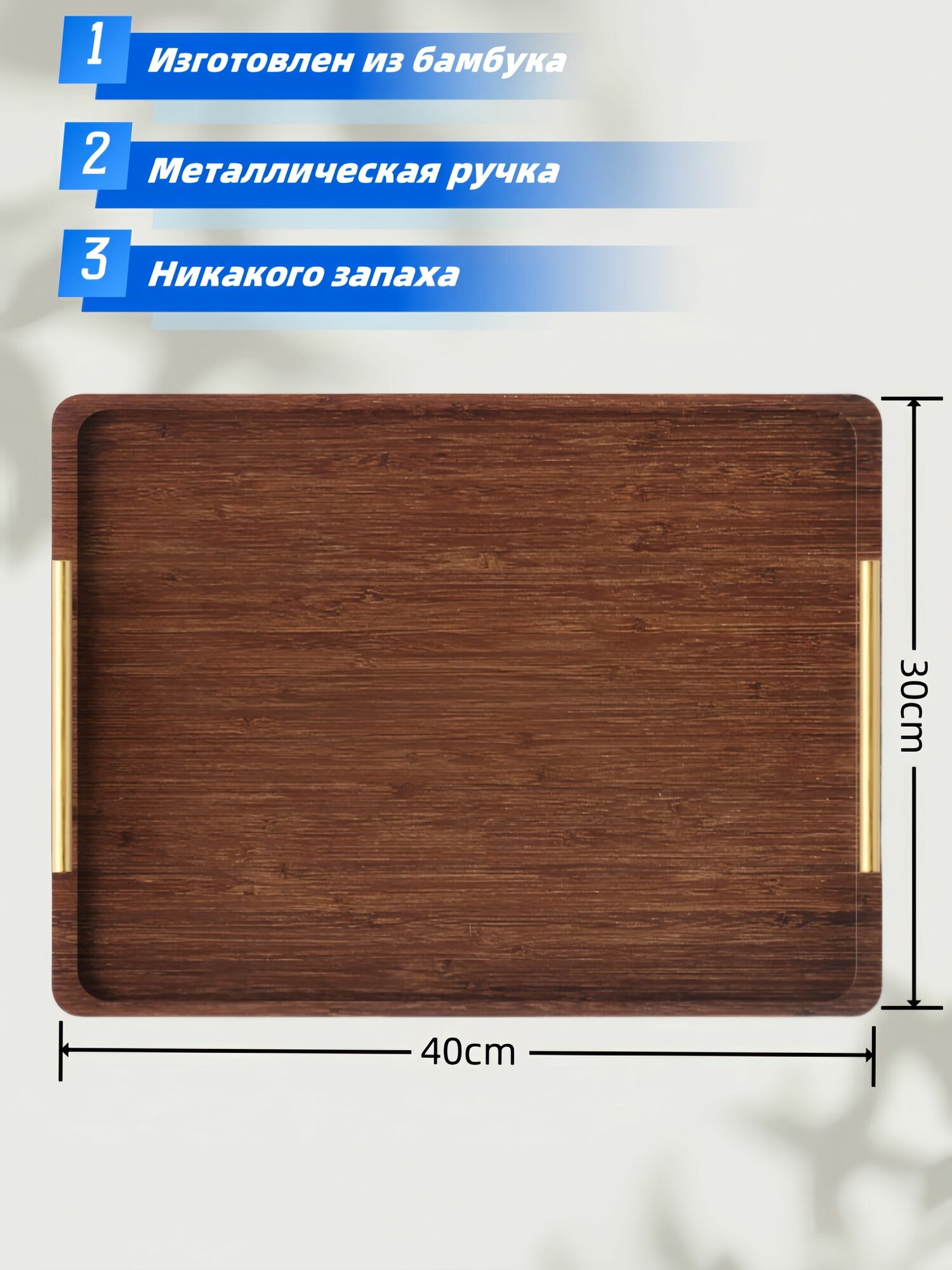Отзывы на Поднос с бамбуковой ручкой, коричневый/красный, 40x23.7x1600 г