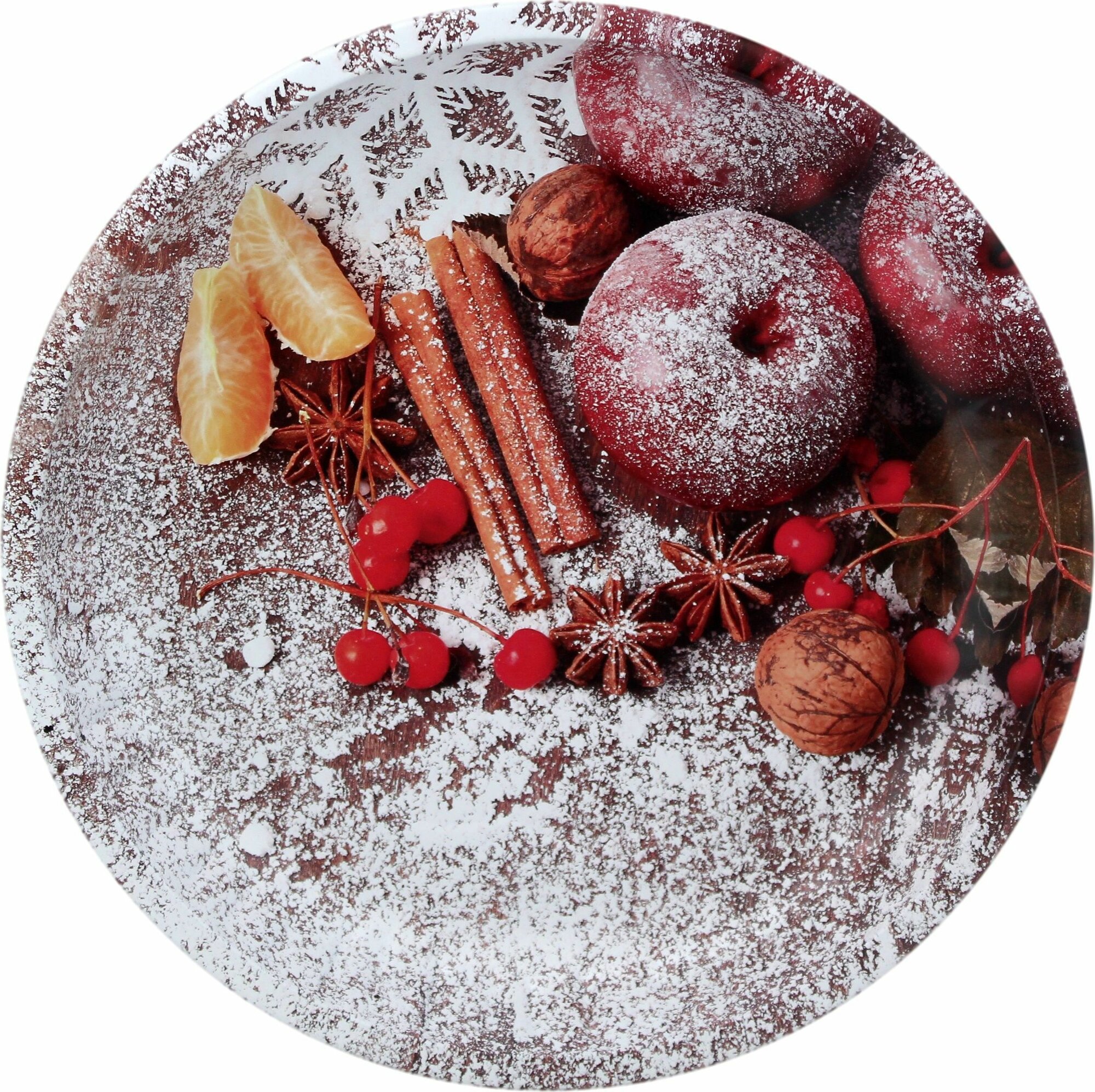 Отзывы на Поднос НатаМ металлический Новогодний круглый набор 2шт 25,7х3 см Рождественские ароматы