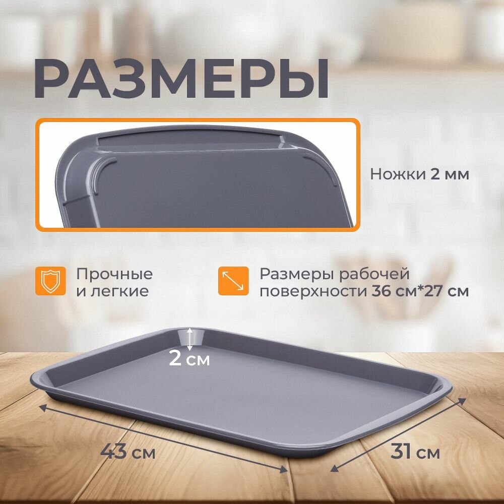 Подносы пластиковые SparkPlast, прямоугольные, набор из 2 шт, 43х31 см, темно-серые, для заморозки, шашлыка и сервировки информация: