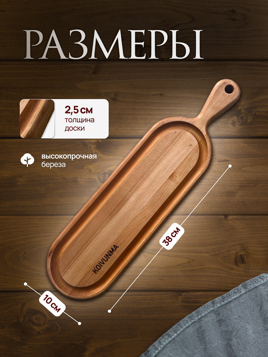 Доска сервировочная для подачи закусок, 38см x 10см, 1 шт, береза информация: