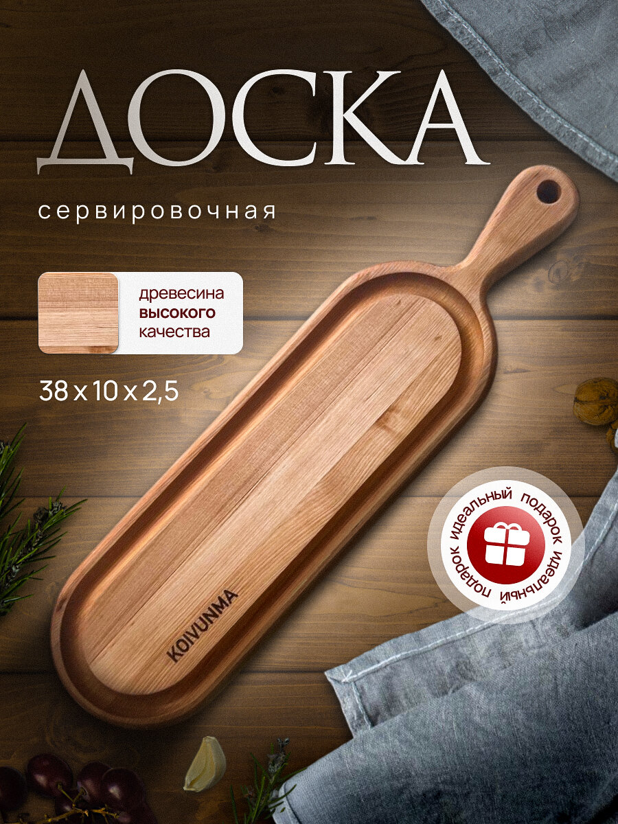 10 цен на Доска сервировочная для подачи закусок, 38см x 10см, 1 шт, береза