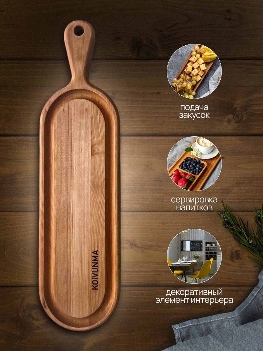 Отзывы на Доска сервировочная для подачи закусок, 38см x 10см, 1 шт, береза