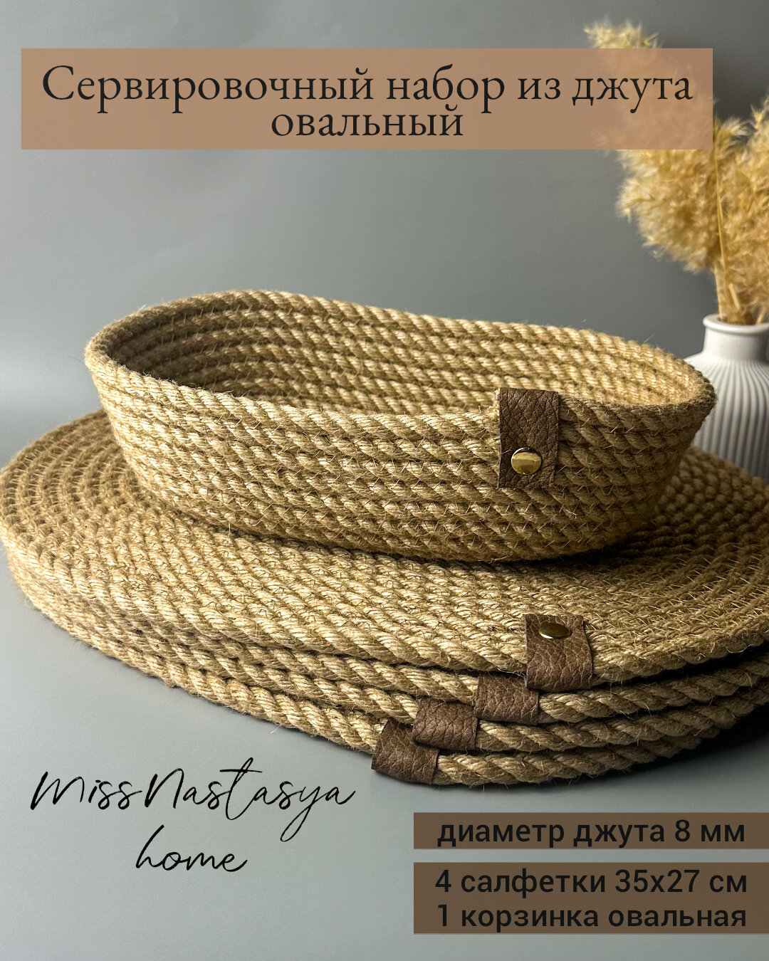 Салфетки овальные для сервировки из джута с корзинкой овальной информация:
