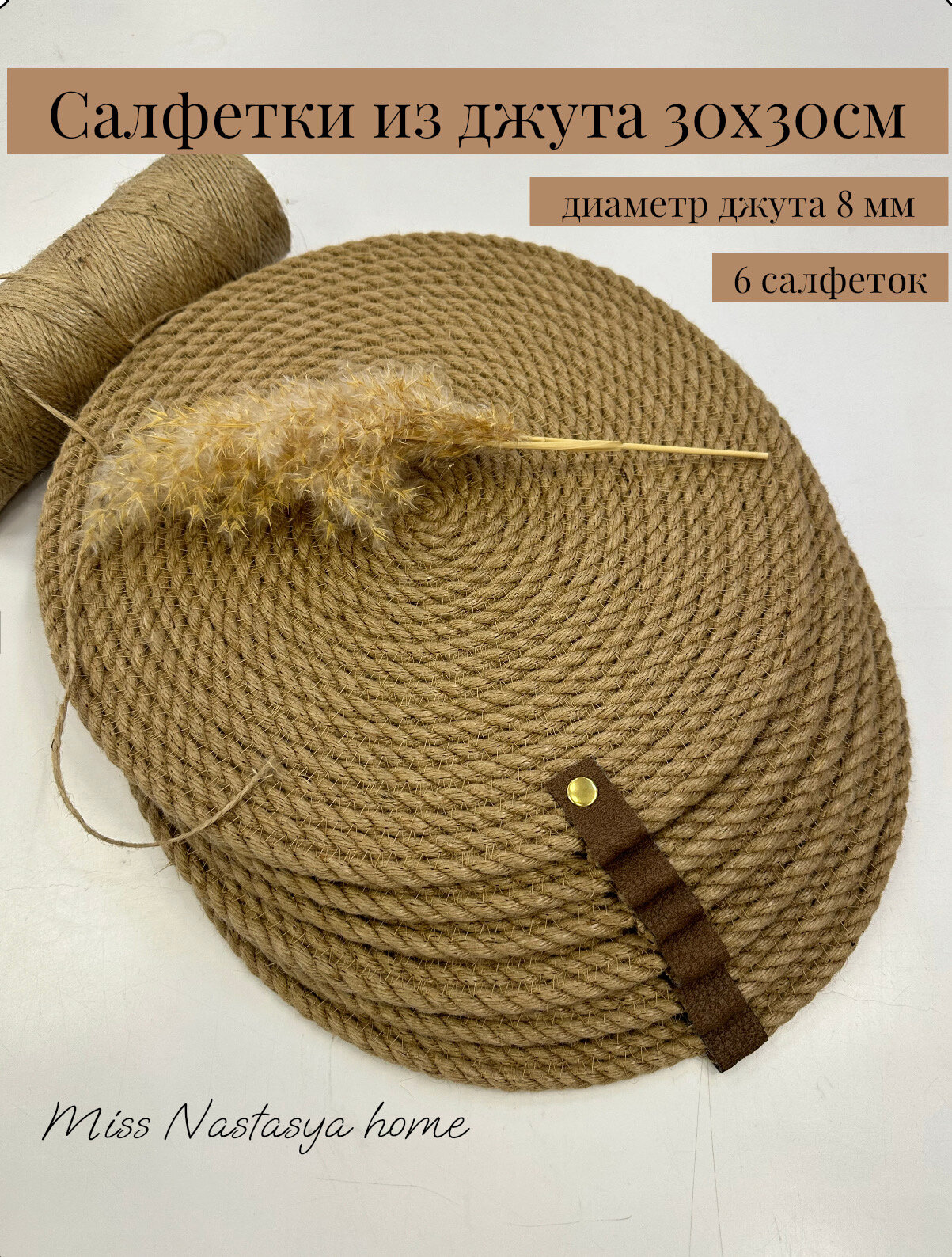 10 цен на Салфетки 6 штук для сервировки стола, круглые, из джута 8 мм